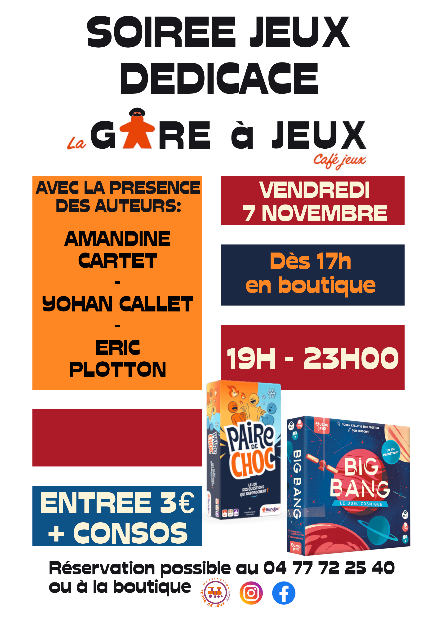 Ils seront présent dès 17h en boutique pour des dédicaces, la soirée jeux commancera dès 19h30.